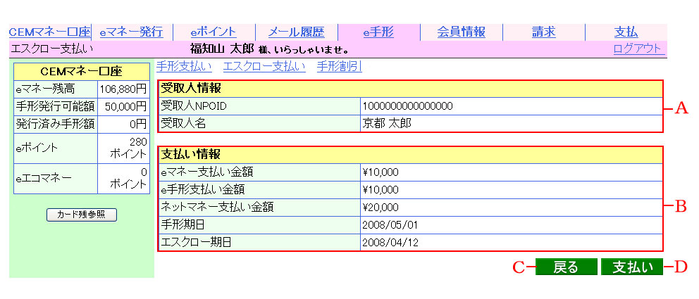 入力された情報で、相手会員にエスクロー支払いをします。